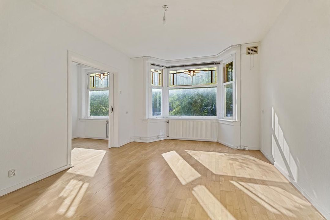 Entree van de woning op de eerste verdieping, hal met toegang tot alle vertrekken, heerlijk lichte woon- en eetkamer met fraaie glas-in-loodramen, een erker en een schouw. Aan de achterzijde bevinden zich de keuken en de slaapkamer met openslaande deuren naar het balkon. Er is een apart toilet en een douche.