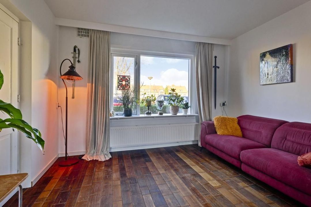 Zij-entree met toegang tot het trappenhuis. De woonkamer is heerlijk licht en grenst aan een open keuken met voldoende ruimte voor een gezellige eettafel. De keuken, vernieuwd in 2021, is uitgerust met een ingebouwde (stoom)oven, een gaskookplaat, en een solide rvs-werkblad. Vanuit de keuken is er toegang tot de achtertuin.